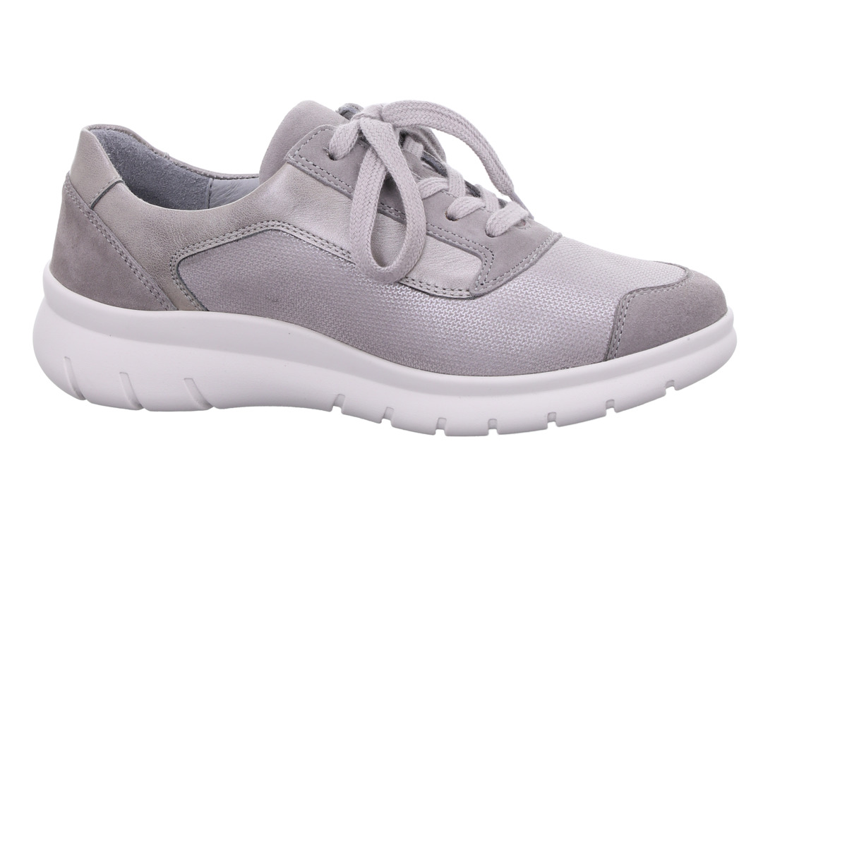 Das hochwertige Obermaterial in verschiedenen Graunuancen verleiht dem Schuh eine zeitlose Optik. Die leichte, flexible Laufsohle unterstützt eine natürliche Abrollbewegung und sorgt für ein angenehmes Laufgefühl - ideal für lange Tage.