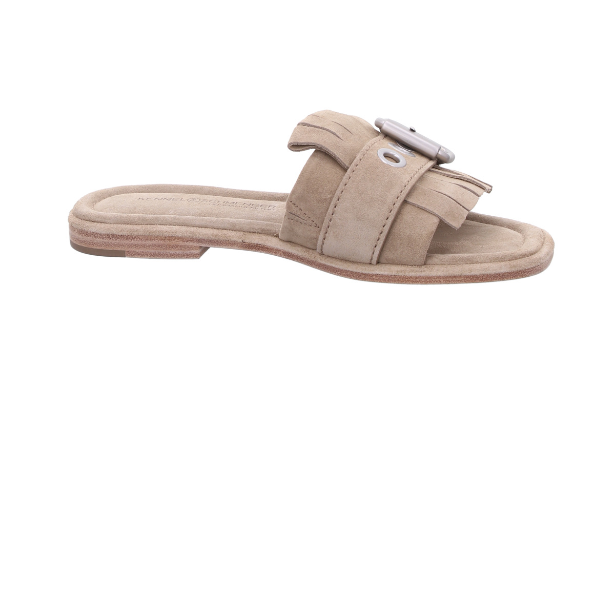 Die Pantolette LYA von Kennel & Schmenger vereint zeitlose Eleganz mit modernem Minimalismus. Gefertigt aus hochwertigem Veloursleder in der edlen Farbe Nuts, überzeugt dieses Modell durch seine weiche Haptik und seinen stilvollen, natürlichen Look.