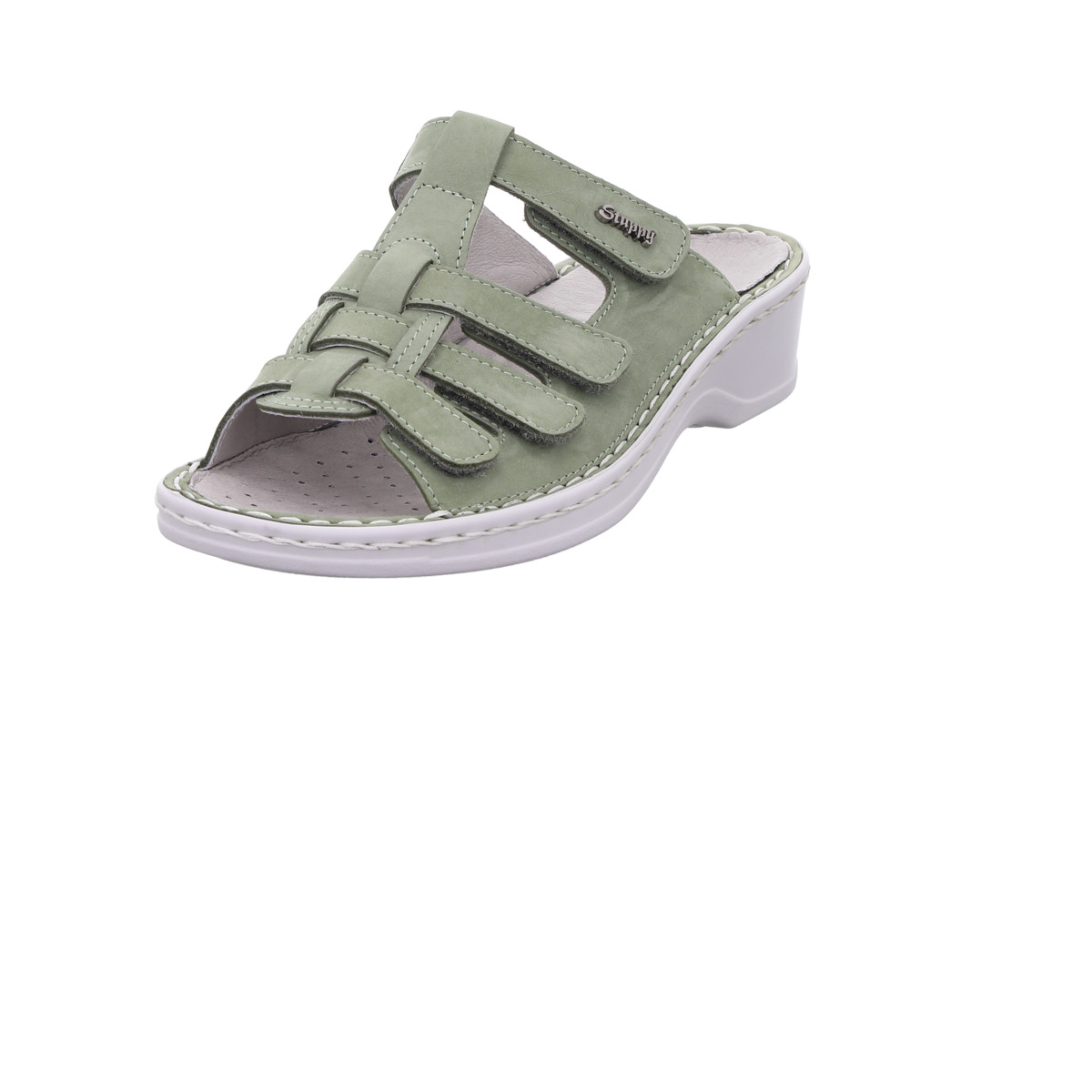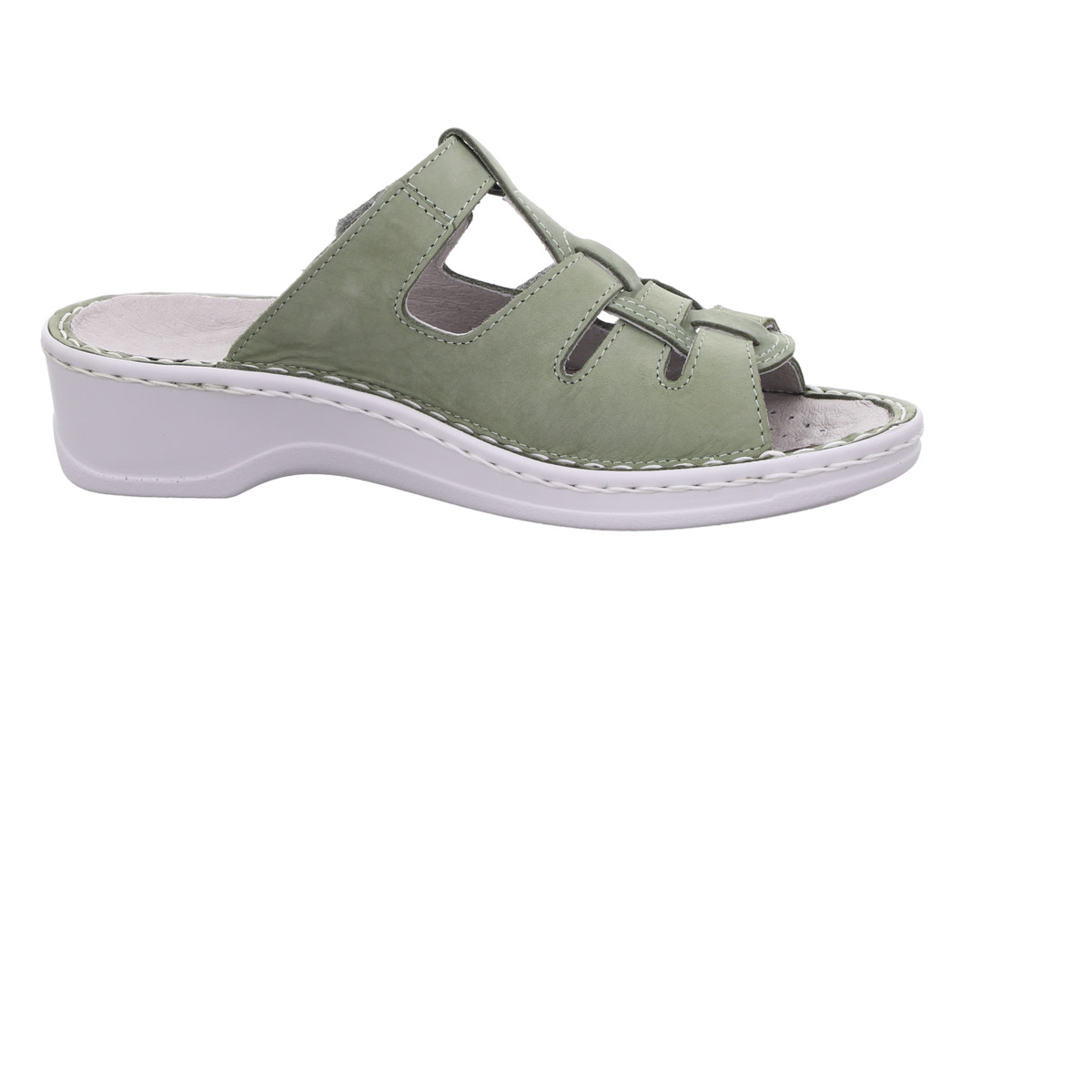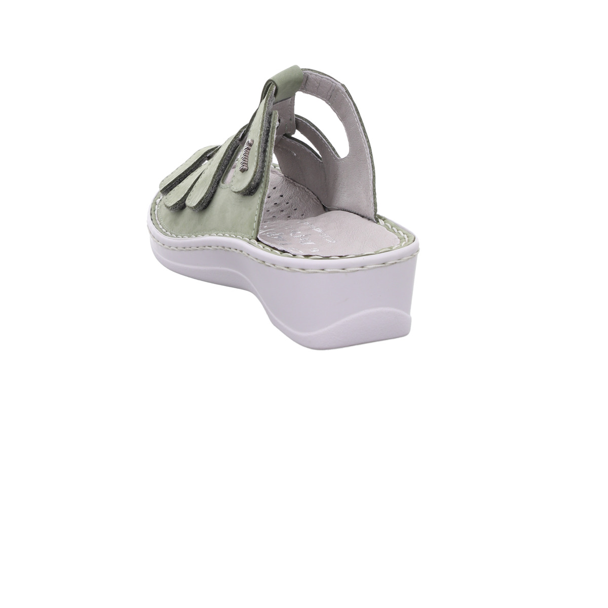Mit ihrer komfortablen Weite H bietet die Pantolette mehr Raum für breitere Füße. Das herausnehmbare Wechselfußbett ermöglicht den Einsatz eigener Einlagen und macht das Modell besonders flexibel und orthopädisch geeignet.