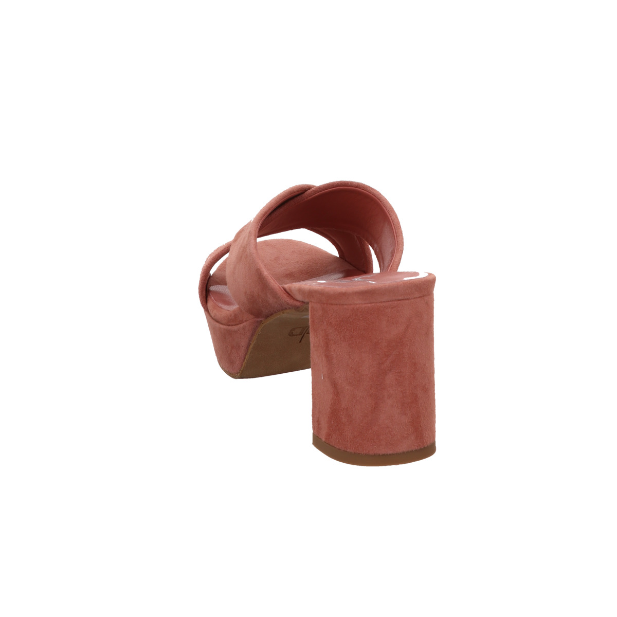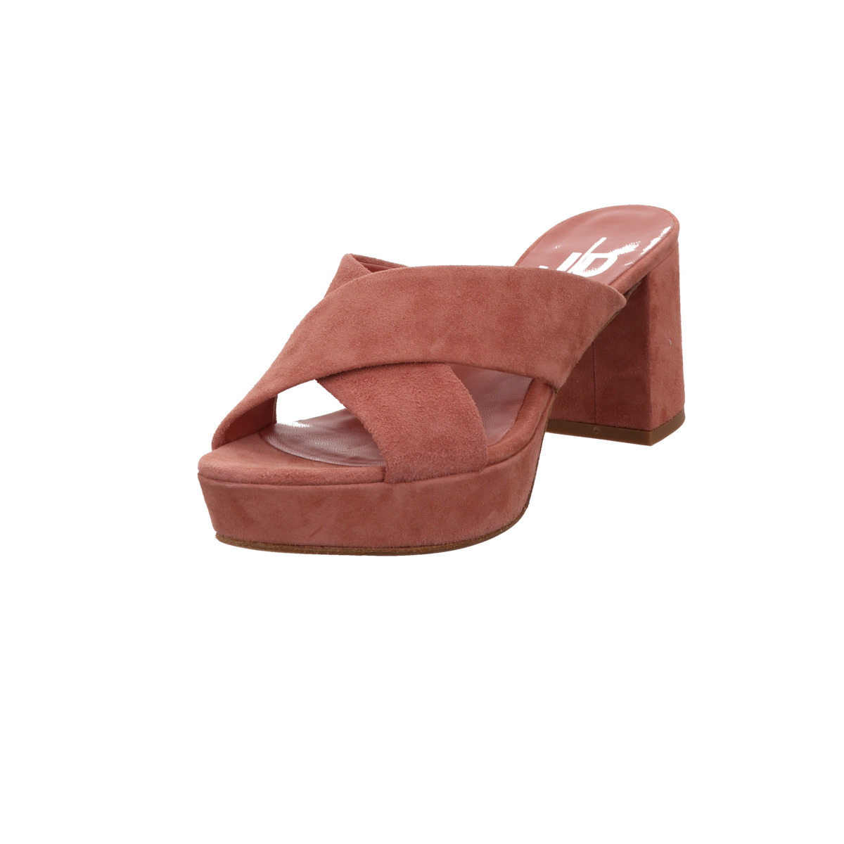Julie Dee von The Seller! Pantoletten mit Blockabsätzen und Plateaus sind angesagter denn je und waren nicht nur in den 70er-Jahre-Trends. So ist diese Pantolette von Julie Dee aus Velours Leder in einem Rose Ton ein optisches Statements und für den Sommer ein Must Have in ihrem Schuhschrank.