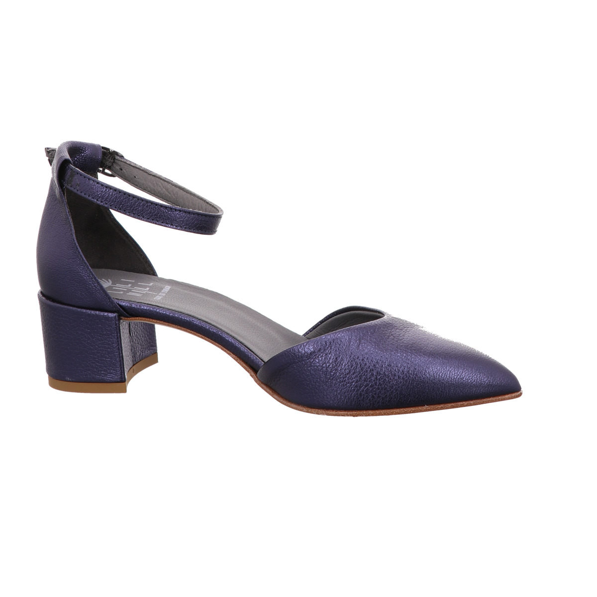 Lili Mill! Bezaubernd ist dieser blaue Pumps mit Fesselriemen aus dem Hause Lili Mill. Der spitze Leisten und Mètallisès gibt dem Modell einen modernen Look. Besonders lässig ist die Kombination zu Girlfriend-Jeans und T-Shirt. Aber auch edel kombinierbar zum Kleid.