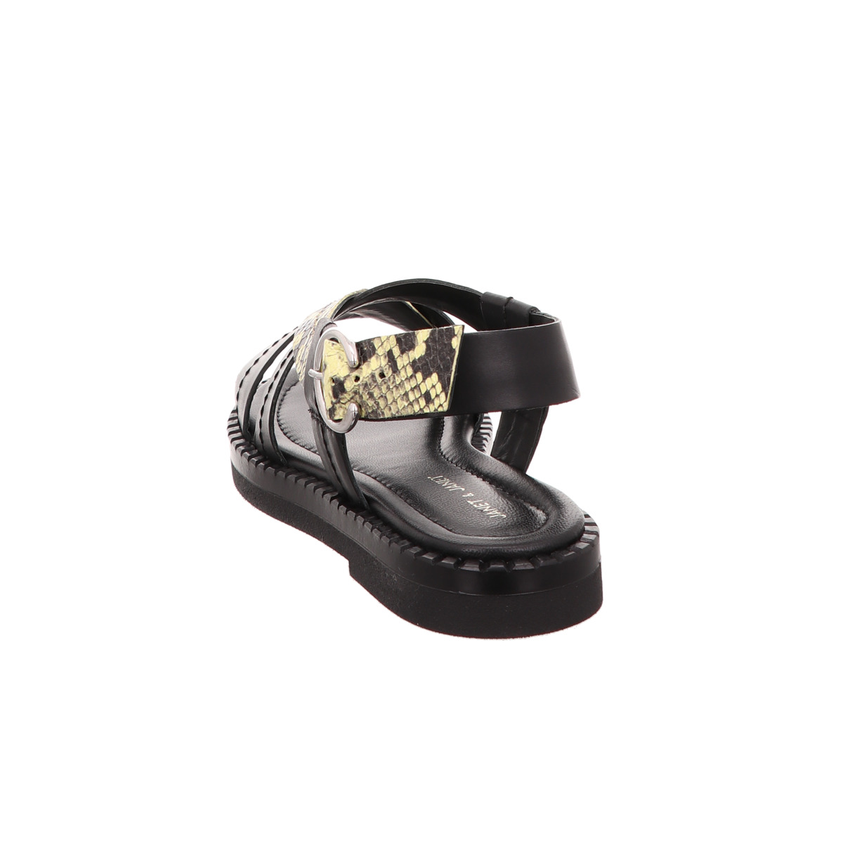 Janet + Janet - Der italiensche Lieferant hat eine tolle Verarbeitung und ist richtig modisch. Die Sandale von Janet + Janet ist in einem Schwarz/Gelb Krokoleder gehalten und passt perfekt zu jedem Outfit. Ob Kleid oder zur Jeans. Durch einen Riemen können Sie die Sandale an Ihren Fuß einstellen. Bestellen Sie die Sandale von Janet + Janet bei Trendweiser.de!