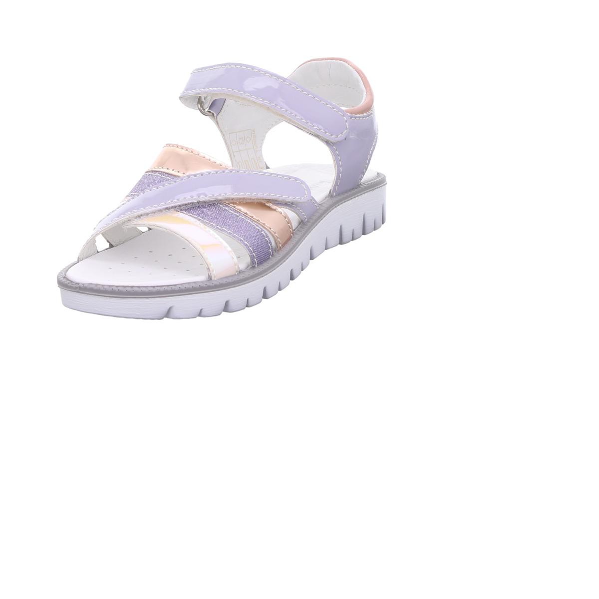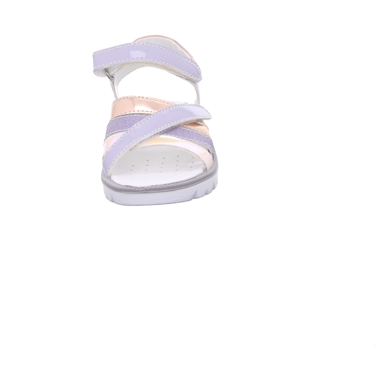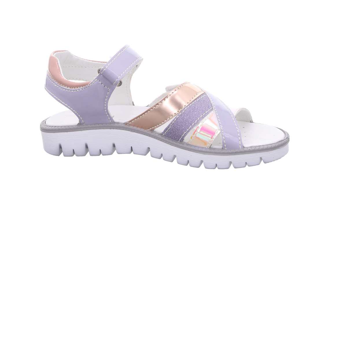 Die Sandale begeistert durch ihre sanften Farben und glänzenden Lackleder-Elemente, die jedem Sommer-Outfit eine besondere Note verleihen. Die dekorativen Riemen sorgen für einen modernen, kindgerechten Look.