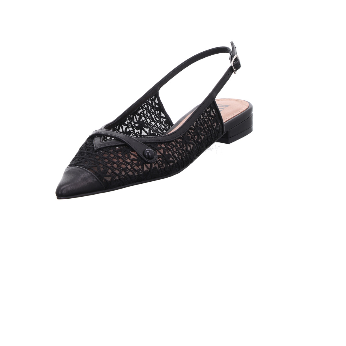 Das transparente Textil mit dekorativer Struktur verleiht dem Schuh eine leichte, luftige Optik, während die spitz zulaufende Form für eine feminine Silhouette sorgt. Die geschlossene Lederkappe unterstreicht den edlen Charakter des Slingbacks. Ein schmaler Fersenriemen mit verstellbarer Schnalle garantiert optimalen Halt.