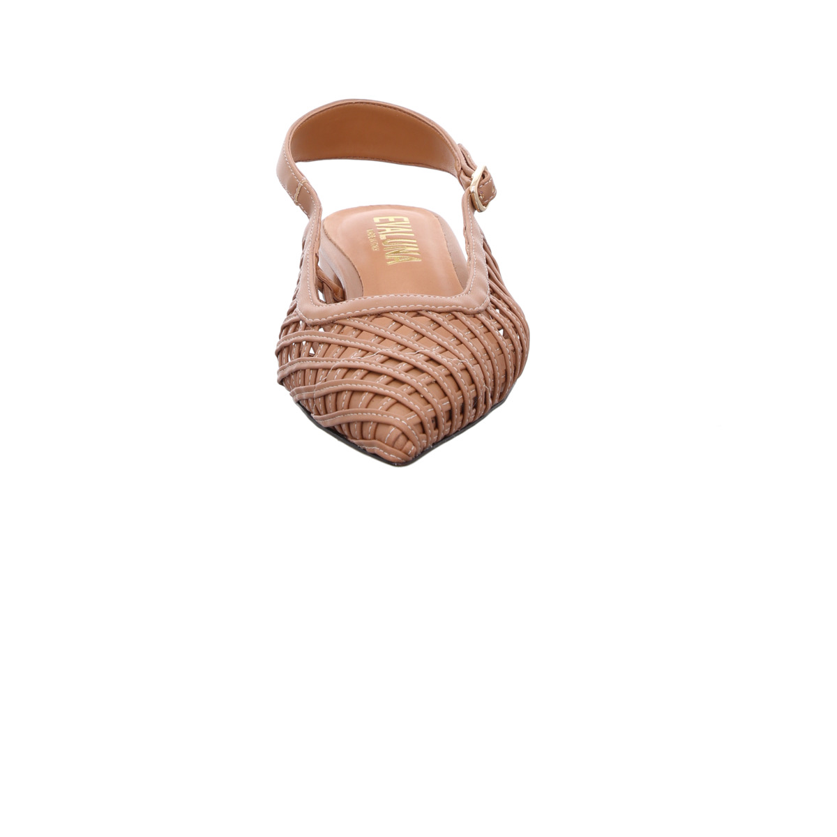 Das kunstvoll gearbeitete Flechtdesign verleiht dem Sling eine besondere Raffinesse und sorgt gleichzeitig für eine luftige, angenehme Passform. Die spitz zulaufende Form unterstreicht die feminine Silhouette und verleiht jedem Outfit eine elegante Note.