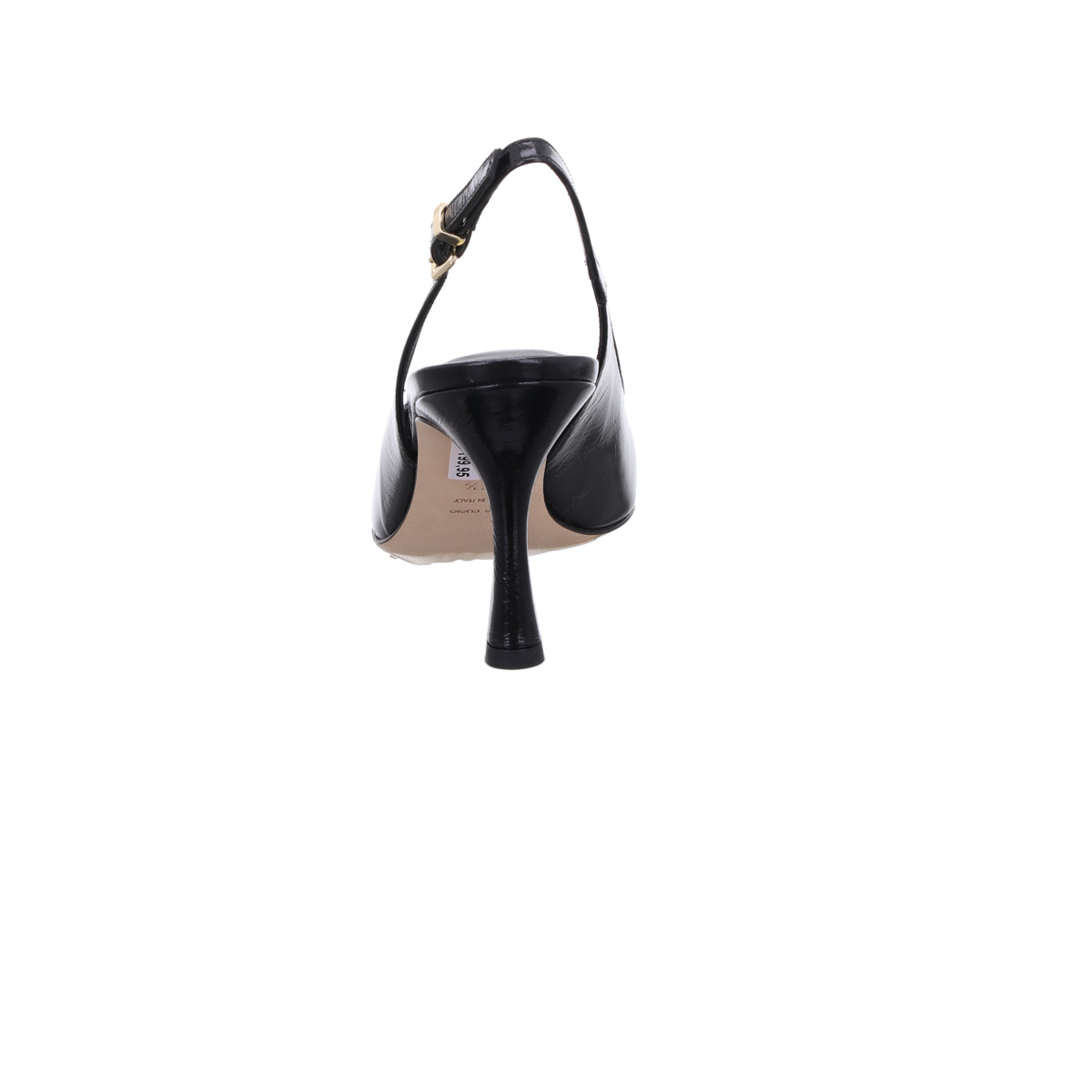 Die spitz zulaufende Form unterstreicht die elegante Linie des Slings. Das verstellbare Fersenriemchen mit feiner Schnalle ermöglicht eine individuelle Passform und optimalen Halt. Der glänzende Lack macht dieses Modell zu einem echten Hingucker.