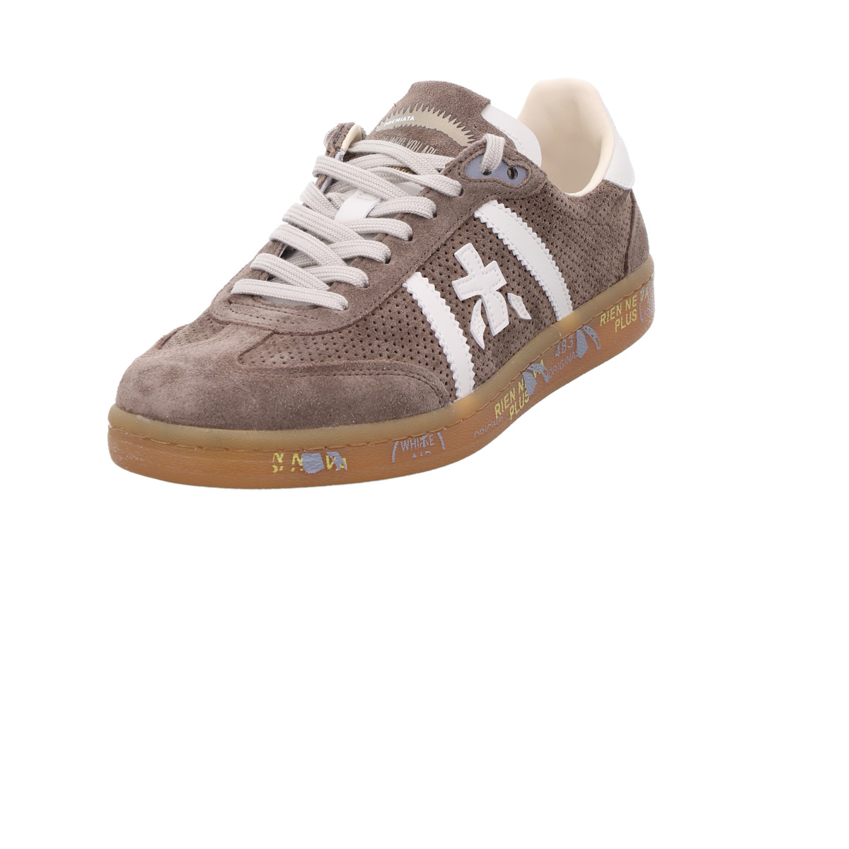 Markentypische Details: Auffälliges Premiata-Logo und charakteristische Sohlenprints sorgen für einen unverwechselbaren Look