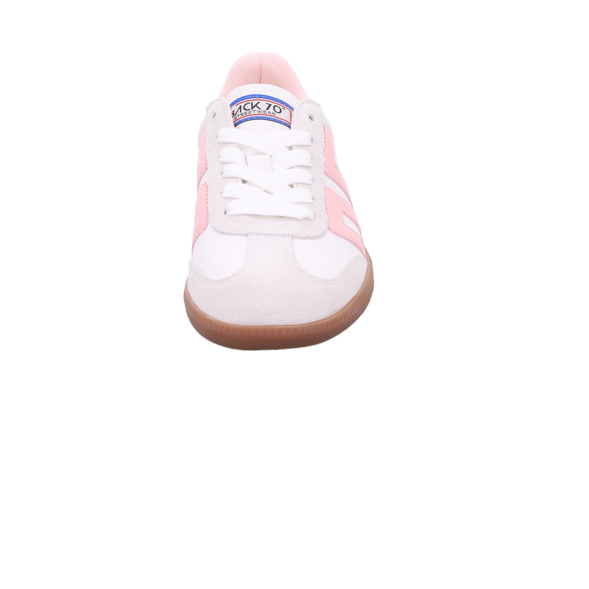 Sportlicher Retro-Charme trifft auf modernen Streetstyle: Der CLOUD von BACK70 ist der perfekte Damen Sneaker für alle, die angesagte Vintage-Vibes lieben. In der frischen Farbkombination Weiß/Rosa setzt dieser Ledersneaker modische Akzente und liegt absolut im Trend.