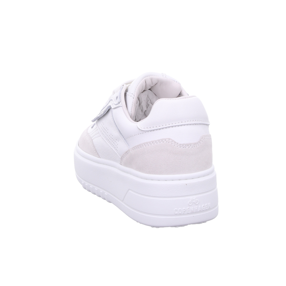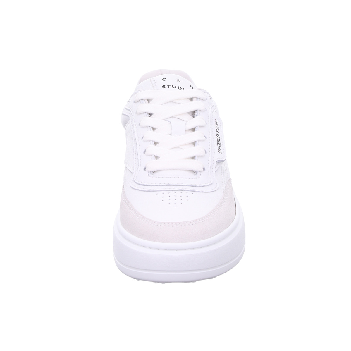 Die Kombination aus glattem Leder und feinen Veloursleder-Details verleiht dem Schuh eine hochwertige Struktur und unterstreicht den modernen Charakter des Modells. Dezente Perforationen und das seitliche Copenhagen Studios Branding setzen stilvolle Akzente.