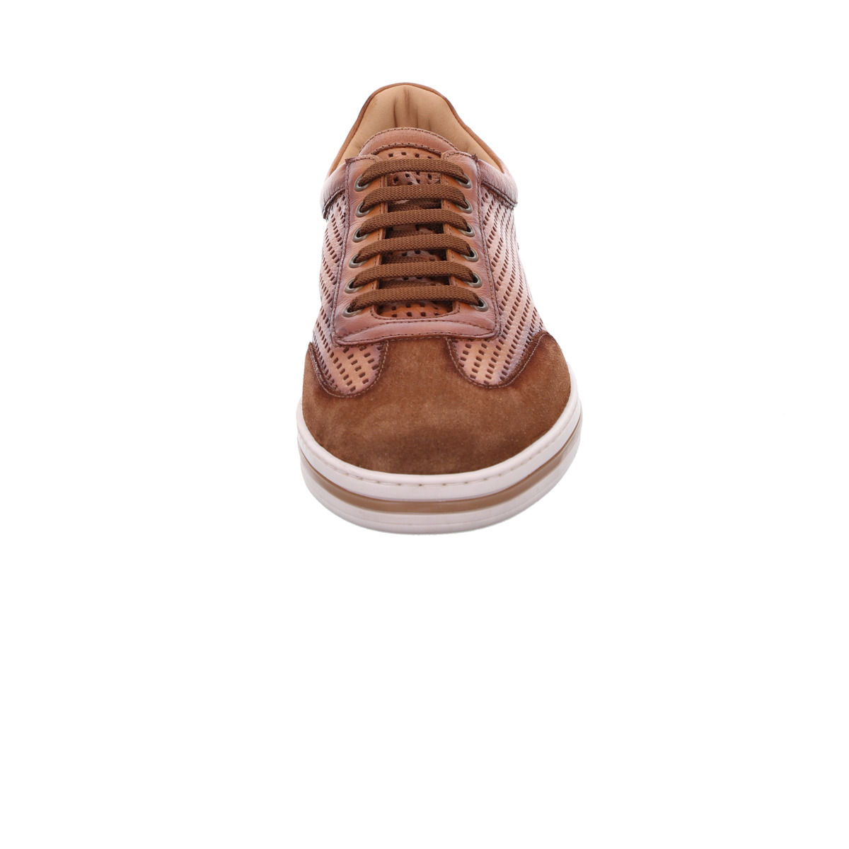Die feine Perforierung im Leder sorgt nicht nur für eine markante Optik, sondern auch für ein angenehmes Fußklima - ideal für Frühling und Sommer. Kombiniert mit hochwertigen Veloursleder-Elementen entsteht ein harmonisches, sportlich-elegantes Gesamtbild.