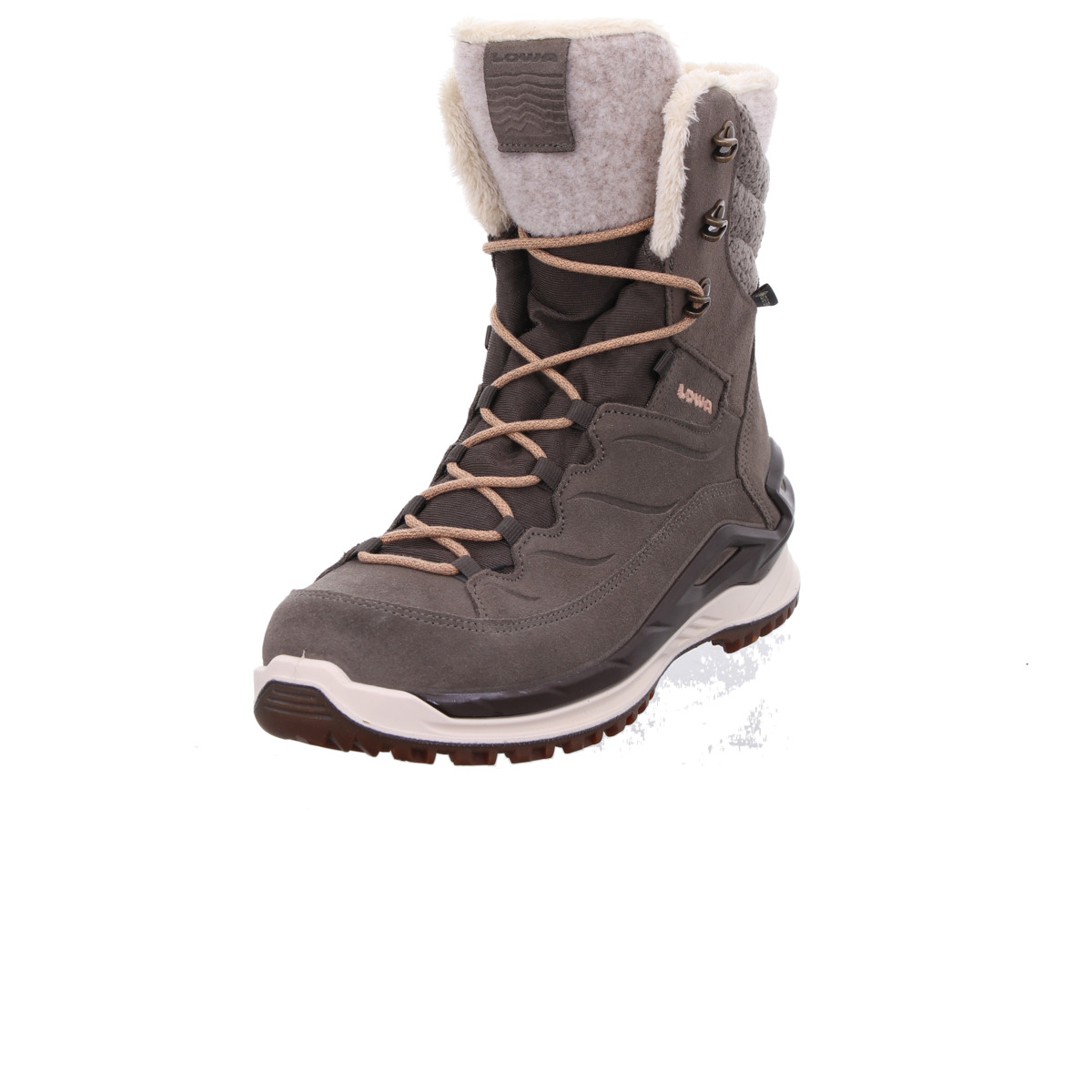 Die Lowa Calceta EVO GTX Ws in der Farbe Stein/Biscuit ist die perfekte Outdoor-Stiefelette für kalte Tage. In einem edlen Braunton gehalten, vereint sie Funktionalität, Komfort und stilvolles Design.